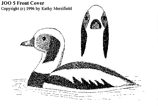 Others have also helped JOO in various ways. Kathy Merrifield's drawings graced the front covers of JOO No. 5 and No. 6. Janet Webster, Susan Gilmont, and Judy Mullen of the OSU Hatfield Marine Science Center Guin Library provided research library assistance. Oregon-Aqua Foods (now defunct), the OSU Hatfield Marine Science Center, and the Bureau of Land Management at Yaquina Head Outstanding Natural Area provided jobs (especially those that were part-time) that allowed me to work on JOO and other projects on my own time. My parents Don and Ruth Bayer (both deceased) also provided support that helped me publish JOO.